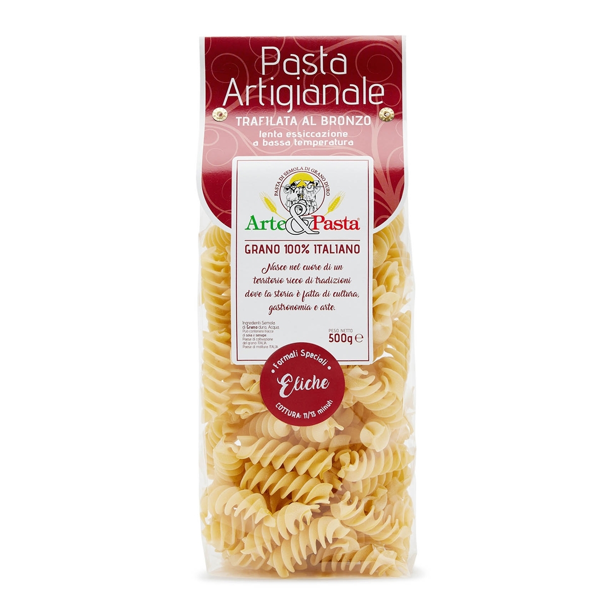 Handmade pasta made in Italy from 100% Italian wheatBronze drawing and slow drying at a controlled temperature guarantee a unique texture and intense flavor.